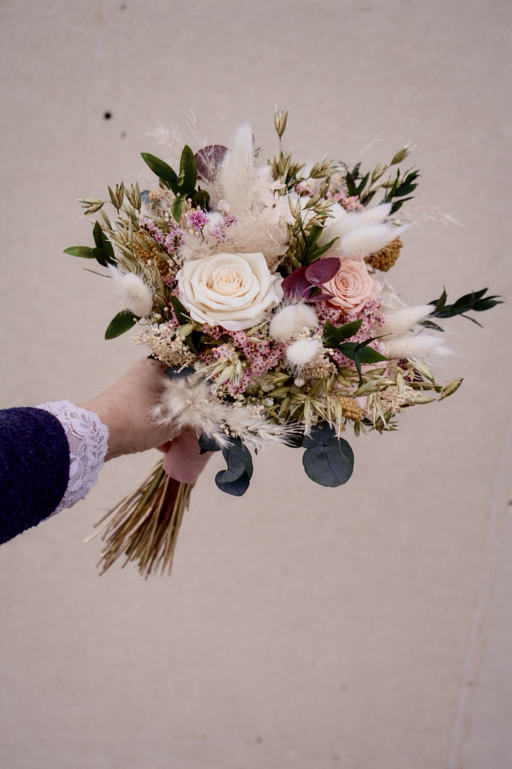 "Ramo de novia elaborado con flor seca y preservada"