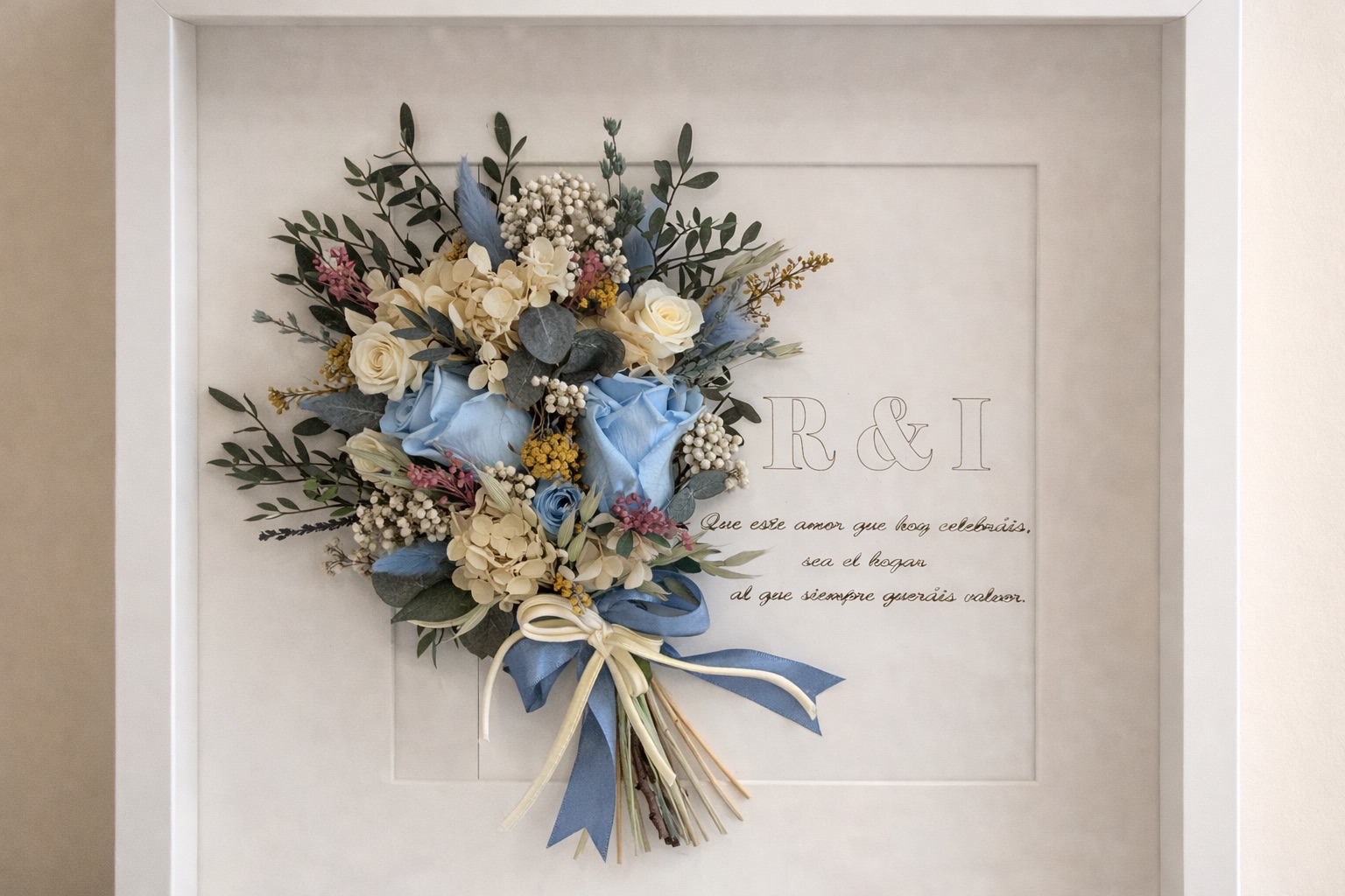 «Cuadro elaborado con un ramo de flor seca y preservada»