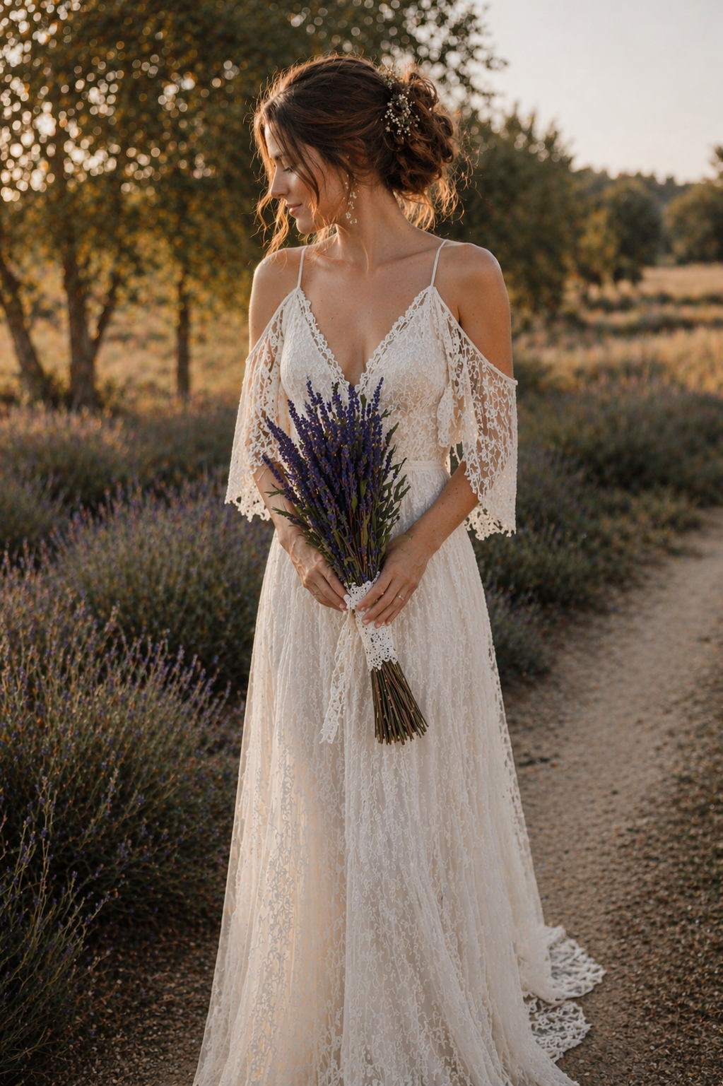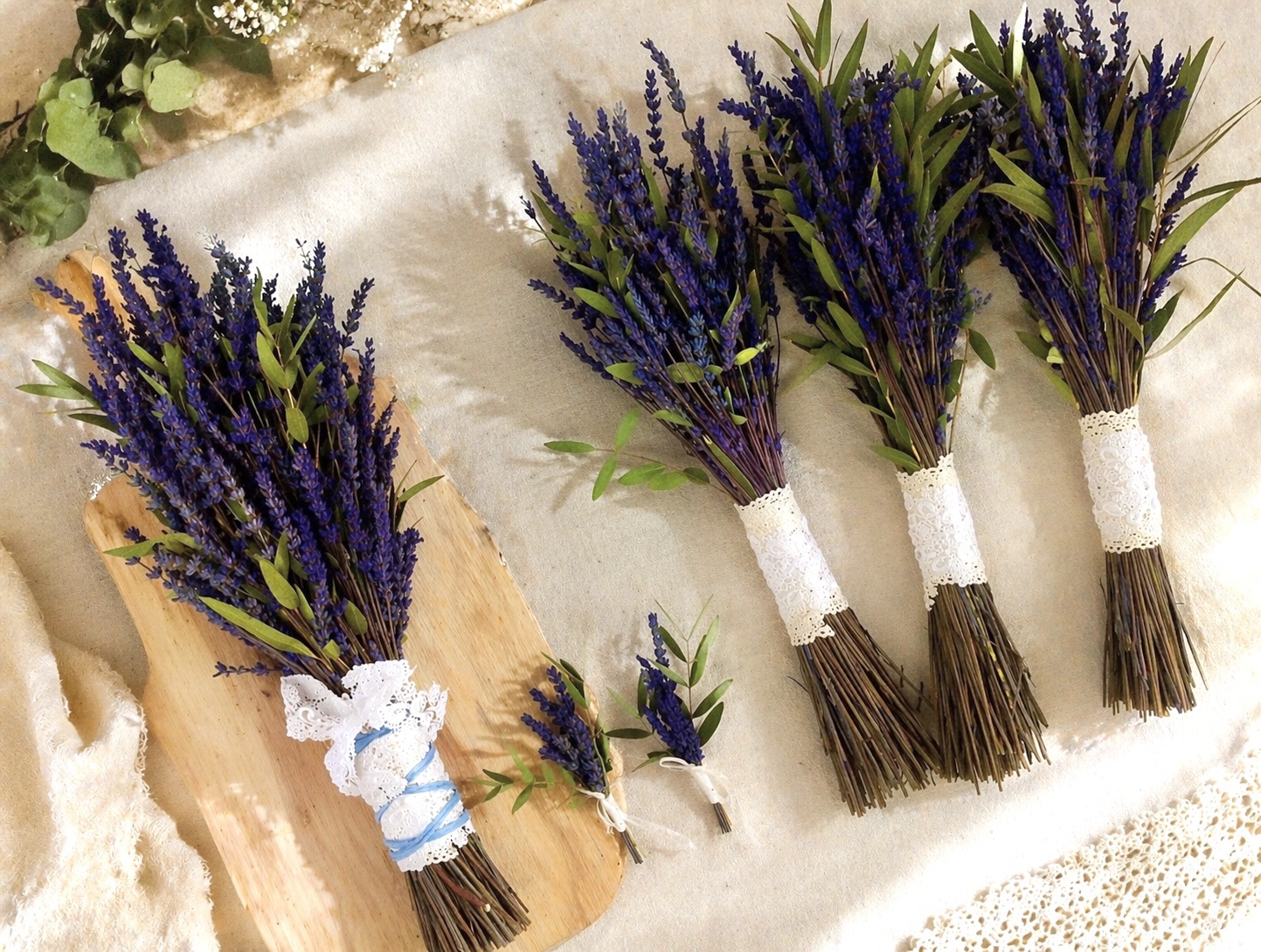 Ramo de novia de lavanda. Lavanda preservada , con un formato alargado y limpio.